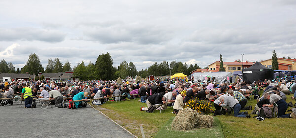 After praying on the knees and singing the hymn Herraa hyvää kiittäkää emptying the festival field. The benches are collected aside.