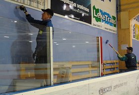 Jäähallilla ovat miehet tehneet kunnostustalkoita koko menneen viikon. Talkoolaisia on ollut päivittäin 5-10. Talkoilla korvataan osa hallin vuokrasta. Samalla moni osapuoli hyötyy kunnostuksista.