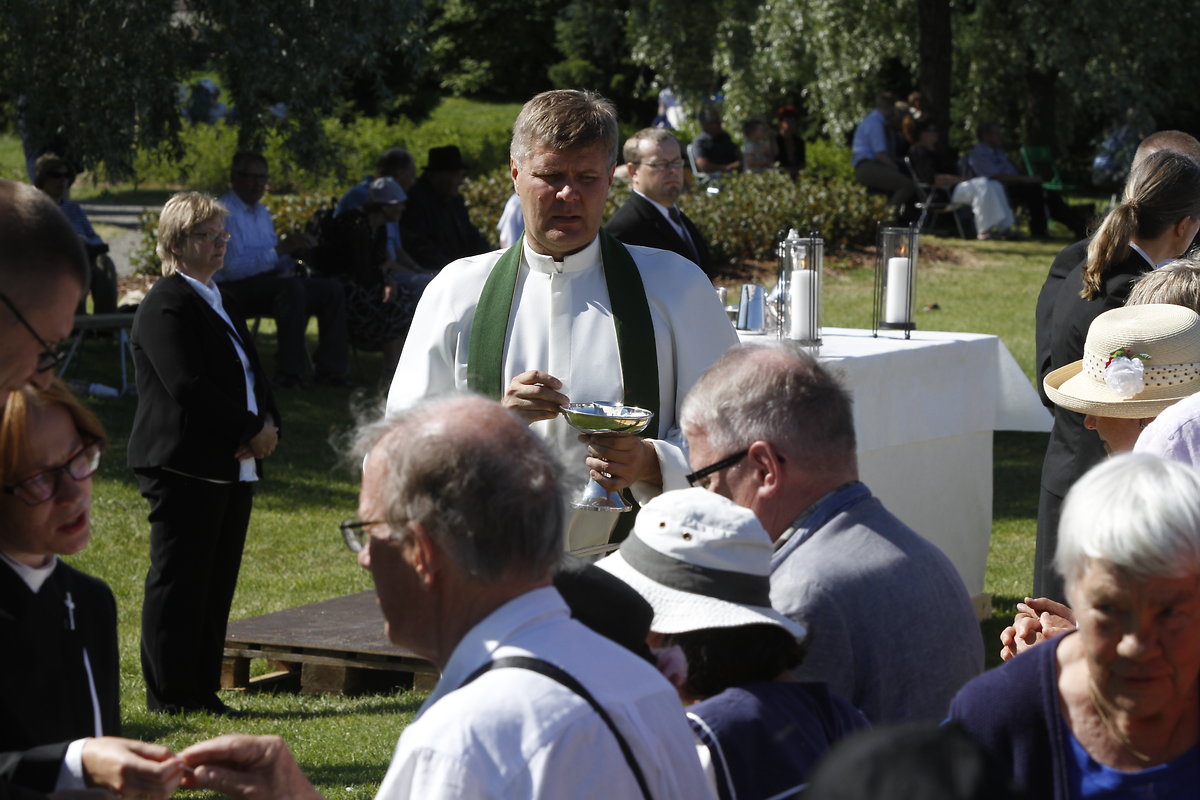 Juhlavuutta antoivat ehtoollista kahdeksassa pisteessä jakavien pappien kulkue ja yhdistyksen musiikkityön hedelmiä kuvaava yhdistetty kuoro kanttori Paula Pääkkösen johdolla. Juhlakenttä ympäristöineen oli täynnä ehtoolliseen hiljentynyttä juhlakansaa.