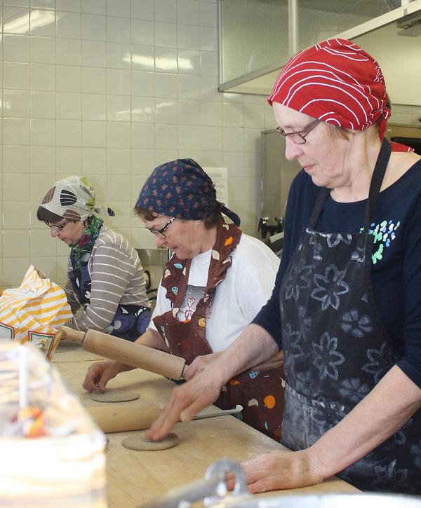 Piirakkatalkoisiin on osallistunut toistakymmentä naista. Maaliskuun 18. päivän talkoissa leivottiin yli 500 piirakkaa. Ne myytiin lämpiminä tyytyväisille juhlien tukijoille.