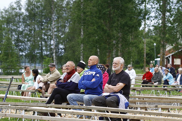 Talkoolaiset pääsivät ensimmäisinä testaamaan juhlakentän penkkejä talkooseuroissa.