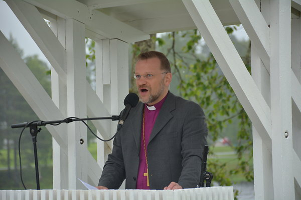 Raamattutunti kuunneltiin Sanan ja sateenvarjojen alla. Piispa Jari Jolkkonen puhui tiellä kulkemisesta, kristinuskon olemuksesta ja Jumalan avusta tiellä. Kuuntelukokemus oli vaikuttava.