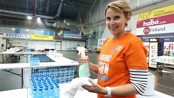 Vantaalainen Liisa Tenhunen-Ruotsalainen osallistuu talkoisiin siistijänä juhlaravintolassa. Tehtäviin kuuluu ravintolan pöytien puhdistaminen ja yleisestä siisteydestä huolehtiminen. Taloudellisessa tiedotustoimistossa johtajana työskentelevä Tenhunen-Ruotsalainen valitsi siistijän tehtävän, koska tehtävässä kohtaa juhlavieraita ja voi jutella asiakkaiden kanssa.
