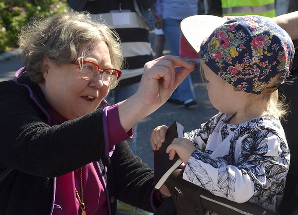 Piispa Irja Askola siunasi junan nuorimman matkustajan Lounan, 1 vuosi 9 kuukautta.