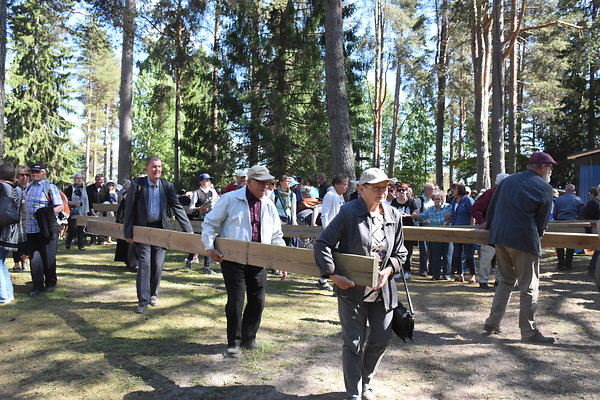 Nilsiän herättäjäjuhlat päättyivät sunnuntaina kahdelta alkaneisiin päätösseuroihin. Seurojen jälkeen juhlakenttä tyhjeni nopeasti, kun koko seuraväki osallistui penkkitalkoisiin.
