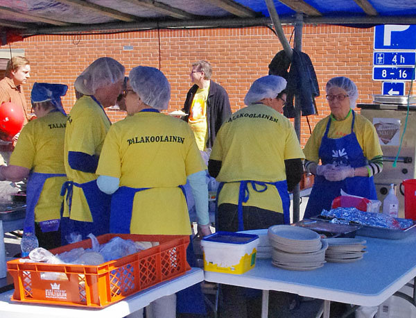 Messun jälkeen nautitaan kirkkokahvit Kalevan kirkon seurakuntatiloissa, ja kahvien päälle pidetään infotilaisuus talkoolaisille. Paikalla on vastuuhenkilöitä ainakin ravintola-, liikenne- ja taloustoimikunnista, joten nyt on tilaisuus tavata ja jututtaa heitä ja saada tarkempaa selkoa omista talkootehtävistä. Paikalla ovat myös juhlien pääsihteeri Petra Perttula ja majoitus- ja talkoosihteeri Heidi Mansikkala.