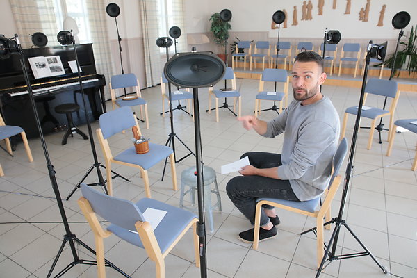 Jaakko Autio ajoi koko kuoron äänet ulos 24 kaiuttimella. Jokainen kaiutin antaa ulos yhden laulajan äänen. Yhdessä ne soivat kuin koko kuoro. Kuva: Jouko Lassila.