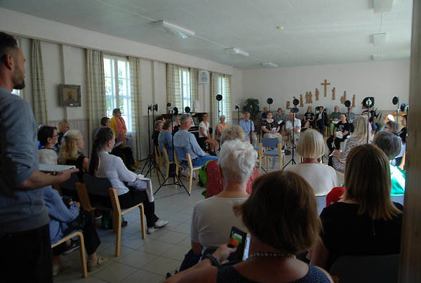 Raudaskylän Körttikuoroa voi kuunnella kuoron sisästä tai ulkopuolelta. Kuva: Pelle Leskinen.