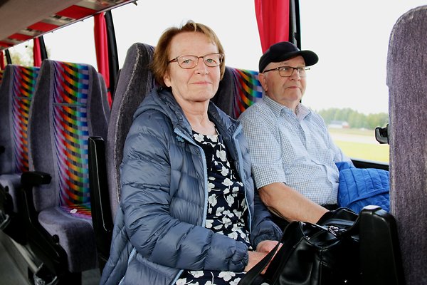Ammattiopiston parkista sunnuntaina bussiin nousseet lapualaiset Helena ja Esa Porola kiittelivät liikennejärjestelyä toimivaksi. - Kaikki muukin on hyvin järjestetty. Juhlapaikka on hieno, ja sääkin on suosinut juhlia, Helena Porola sanoi.