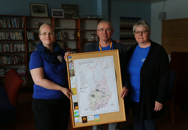 Kauhavan herättäjäjuhlien 2020 pääsihteeri Petra Kero otti vastaan kartan, johon on merkitty kaikkien pidettyjen herättäjäjuhlien paikan. Kartan luovuttaneet Nivalan herättäjäjuhlien 2019 pääsihteerit Jarmo Vuolteenaho ja Riitta Muiilu olivat kiitollisia ja tyytyväisiä.