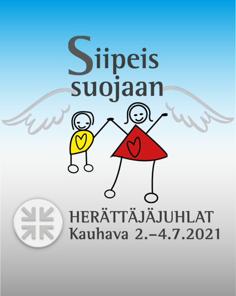 Kauhavan herättäjäjuhlien 2.-4.7.2021 logot. Tunnuksen "Siipeis suojaan" pohjalta annettiin logon suunnittelutehtävä mm. Kauhavan Kirkkorannan päiväkodille ja Ruotsalan alakoululle sekä muutamille taiteilijoille. Viidestä viestintätoimikunnan valitsemasta ehdotuksesta juhlatoimikunnan suosikiksi nousi 5-vuotiaan päiväkotilapsen Silja Pihlajan piirustuksesta otettu malli, jonka stilisoi Anna-Maija Ylinen.