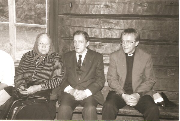 Isäni Veikko, asutustilallinen, oli kävellä könkännyt kumarassa jo pitempäänkin, kun hän joskus 1980-luvalla astui äitini Helmin kanssa tuonne pirttiin. Tuohon kuluneelle penkille ikkunan viereen hän istuutui äidin ja minun väliin. Kuvassa kasvot kertovat sanattomasta sisäisestä kärsimyksestä ja masennuksesta. Ilme oli sama vuosia. Kotona kasvoilta näkyi yhtä paljon myös vihaa ja kiukkua. Isä hymyili, kun tuli vieraita tai tapahtui erittäin mieluista. Ja hän vaikeni enemmän kuin puhui. Hän oli niitä, jotka eivät pysty sanomaan mielipidettään.
