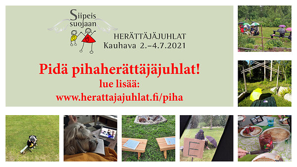 - Pihaherättäjäjuhlat voi pitää pihalla, kotona, seurakunnan tiloissa tai muussa paikassa, jonne voidaan kokoontua alueelliset koronarajoitukset huomioiden kuuntelemaan seuroja, veisaamaan ja tapaamaan ystäviä.