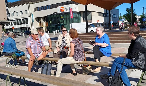 Torille tuoduille penkeille istahtivat tiistaina myös vasta viikon Seinäjoella asuneet Ibrahim ja Naglaa Elmasry. He muuttivat kaupunkiin Egyptistä. Ibrahim Elmasry asui Seinäjoella parikymmentä vuotta sitten. Tuolloin hän valmensi mimmiliigaa.