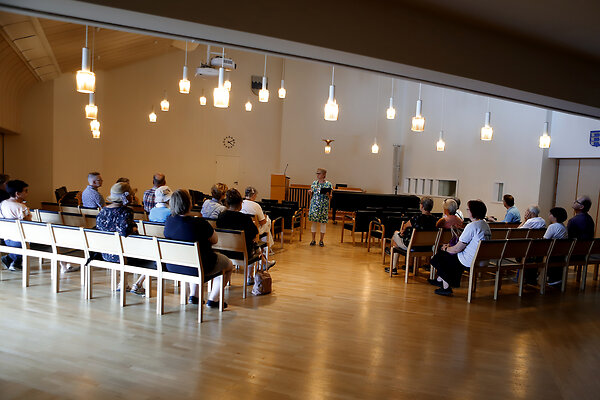 Aaltokeskuksen kävelykierroksella niin kaupungintalon, kirjaston, kirkon kuin teatterinkin esittelyssä korostui se, kuinka luonnonvalo oli mestarille tärkeä.