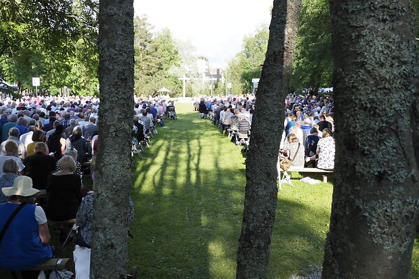 - Rakennukset omalla olemuksellaan muodostavat juhlaportin. Pihlajapuiden ympäröimä puisto sai muodostaa juhlille saapuville körteille syntisten katiskan, joka ohjaa meidät yhteisille penkeille veisaamaan ja kuuntelemaan puheita.