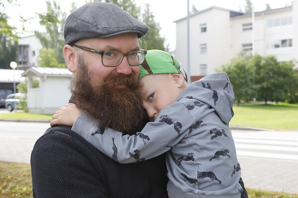 Juho Peltoniemi ja hänen 5-vuotias poikansa Aaro.