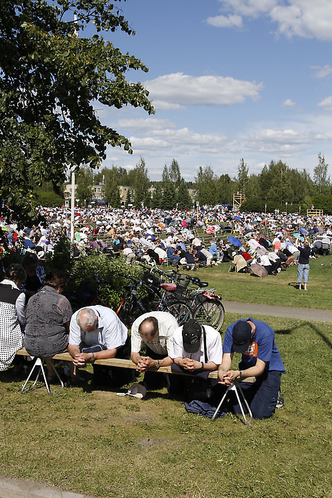 Kuvaukset kertovat, että Paavo Ruotsalainen laskeutui polvilleen ja alkoi ylistää Jumalan armoa – syytetyt ja kansa seurasi hänen esimerkkiään.