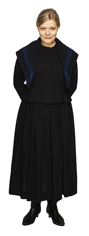 Puolet esityksestä Heli Karhumäki esiintyy körttipuvussa.