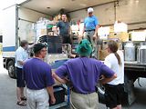 Penkkejä, penkinjalkoja, patjoja. Kuorman päällimmäisenä Osmo Kangas. |
